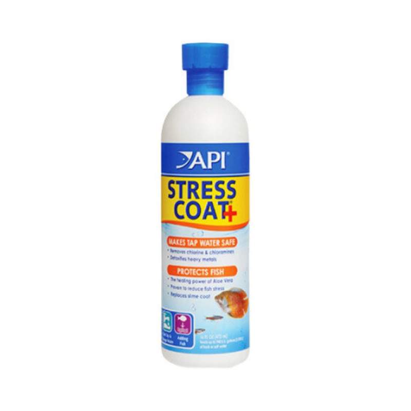 Το μαλακτικό νερού API® STRESS COAT κάνει το νερό της βρύσης ασφαλές για τα ψάρια αφαιρώντας χλώριο, χλωραμίνες και βαρέα μέταλλα από το νερό της βρύσης και περιέχει τη θεραπευτική δύναμη της Aloe Vera για μείωση του στρες των ψαριών έως και 40% και για την επούλωση κατεστραμμένων ιστών και πληγών.