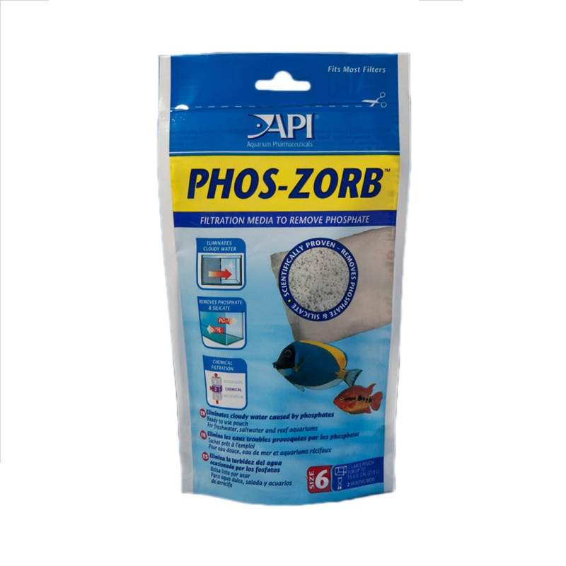 Το API® PHOS-ZORB εξαλείφει το νεφελώδες νερό και τη βρωμιά που προκαλούν τα φωσφορικά άλατα και συμβάλλει στη μείωση της συντήρησης του ενυδρείου σας. Το PHOS-ZORB απομακρύνει τα φωσφορικά και τα πυριτικά, τα οποία είναι κοινά θρεπτικά συστατικά που απαντώνται σε ενυδρεία φρέσκου και αλμυρού νερού που συμβάλλουν στη θολότητα του νερού και επιπλέον απομακρύνουν τις ενώσεις που αναστέλλουν την ανάπτυξη των υδρόβιων φυτών.